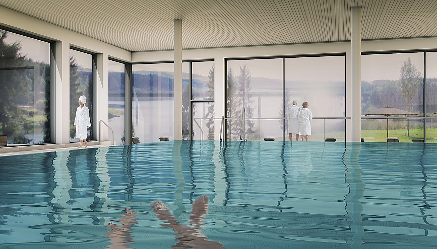 Nach einer 22-monatigen Bauphase wird am heutigen 7. Oktober das neue Panorama Spa eröffnet. Im Baustellen-Tagebuch ließ sich mitverfolgen, wie der hoteleigene Wellnessbereich zu dem heranwuchs, was das Panorama Spa am Zeulenrodaer Meer in Zukunft auszeichnen wird: 1.600 Quadratmeter Fläche, ein 20 Meter langes Schwimmbecken mit Blick auf das Zeulenrodaer Meer, ein völlig neu gestalteter Saunabereich mit Bio-Sauna, Sanarium, Dampfbad und Schneekammer sowie Räumlichkeiten für weitere Beauty- und Wellnessanwendungen mit zertifizierter Naturkosmetik. Heimische Kräuter finden Anwendung in den neu kreierten Waldwellness-Angeboten, welche allein oder zu zweit in den Paarbehandlungsräumen in Anspruch genommen werden können. Komplettiert wird die Wohlfühlatmosphäre durch die Verwendung zahlreicher Naturmaterialien wie Schief, Moos und Holz.